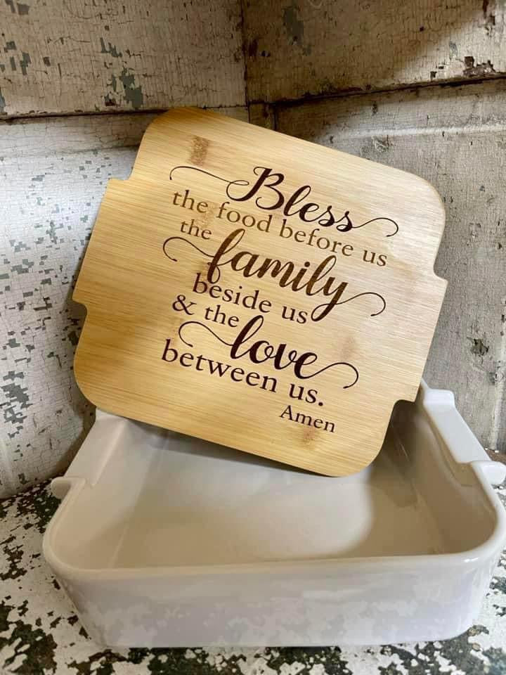 Oven and microwave safe Custom Engraved Beautiful Casserole Dish. Please include any custom text or design you’d like engraved.